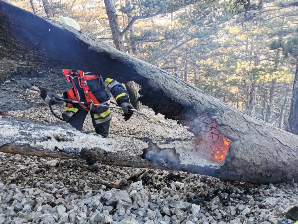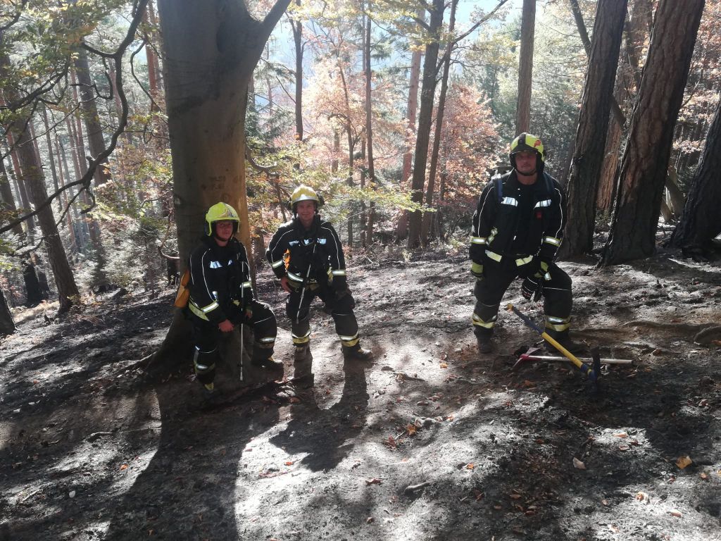 Die Bekämpfung des Feuers gestaltete sich äußerst schwierig und körperlich anstrengend, da im unzugänglichen Gebiet kaum schweres Gerät oder Löschfahrzeuge zum Einsatz kommen konnten. Daher wurde hauptsächlich versucht mit einfachen Geräten die Glutnester zu löschen. Die Arbeit in der Feuerwehrausrüstung in diesem schwierigen Gelände forderte den Einsatzkräften körperlich alles ab.